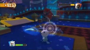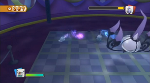 Le score de 25.000 est très simple à atteindre. Changez pour Moustillon avant de retourner voir Lugulabre, qui vous attaquera à l'aide des accessoires scéniques. Il suffira d'un coup pour les détruire. Vous devrez combattre dans l'ordre : 6 puis 4 projecteurs, une puis deux enceintes, et enfin la boule à facettes suspendue au plafond, qui elle nécessitera plusieurs coups avant d'être détruite.