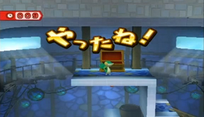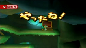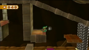 Grimpez ensuite jusqu'au bouton. Si vous avez besoin de temps supplémentaire, allez à gauche, sinon, traversez les plate-formes de droite, détruisez les derniers blocs, et vous atteindrez le coffre.