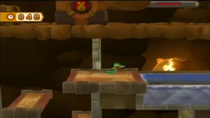 Démarrez avec Gruikui pour briser les rochers, puis utilisez Moustillon pour franchir l'étendue d'eau, sans vous presser à cause de la mine. Placez ensuite le fidèle dé à coudre sur le bouton pour continuer. Sautez de plate-forme en plate-forme et utilisez Gruikui pour traverser les rochers. Utilisez ensuite Vipélierre pour ramasser tous les chronomètres sans perdre trop de temps sur les sauts, et grimpez jusqu'au second lac.