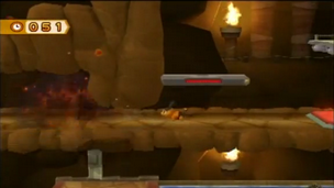 Notez que Roitiflam est assez... enrobé. Si vous l'attirez à côté du canon, puis que vous passez entre le canon et le pilier, il se retrouvera tout bonnement coincé derrière le canon. Il vous suffira alors d'utiliser votre attaque de jet.