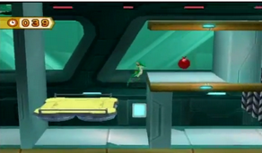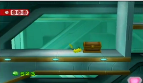 Grimpez jusqu'à l'ascenseur suivant, et sautez vers la droite sans oubliez le chronomètre. Descendez, réactivez le générateur pour atteindre le bouton, et sautez jusqu'au coffre.