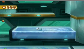Grimpez, puis utilisez Gruikui pour obtenir deux chronos supplémentaires à gauche. Reprenez Vipélierre (il est plus rapide et un ascenseur vous attend) appuyez sur le bouton et remontez par n'importe quel côté. sur votre gauche, vous atteindrez une plate-forme mobile, qui vous conduira jusqu'à un ascenseur. Activez-le, traversez l'étendue d'eau avec Moustillon, activez le générateur avec Pikachu, puis reprenez la loutre pour la seconde étendue d'eau.