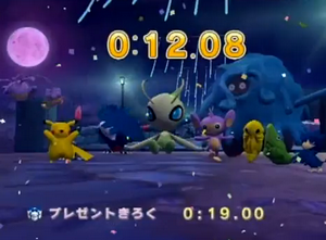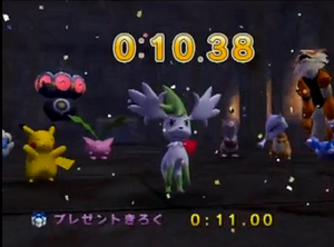 Caractéristiques : c'est sous sa forme ciel que Shaymin participe à la course, ce qui lui permet de courir vite et de sauter loin ; vous ne devriez donc pas avoir de difficulté à battre le record.