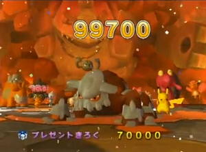 Caractéristiques : pour battre le record, vous avez besoin des 300 points de bonus ; vous les obtenez si Groudon explose les 16 rochers qui lui sont envoyés, au bon moment et sans en rater un seul.