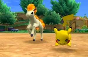 Description : lorsque vous avez fini d'explorer la zone plage, Ponyta vous attend à la zone rassemblement ; il se fera un plaisir de booster la vitesse de votre Vive Attaque en vous faisant faire des tours de piste de plus en plus rapides ; cette amélioration est indispensable pour pouvoir franchir les obstacles des différentes épreuves de saut ; Vive Attaque est activée avec le bouton 1 de la télécommande Wii.