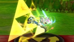 ![]() | Frappe Triforce Pour utiliser son Final Smash, Link doit toucher au moins un adversaire avec le coup d'épée d'activation. S'il réussit à attraper quelqu'un, il lui assène un grand nombre de coups alors que la Triforce brille derrière lui. Lorsque Link assène le coup final, la triforce vole en éclat et l'adversaire est projeté au loin. |