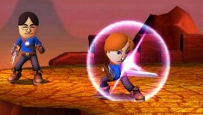 ![]() | Bouclier Le Mii génère un bouclier qui repousse les projectiles droit vers leur direction d'origine. Le bouclier peut légèrement blesser les joueurs. |