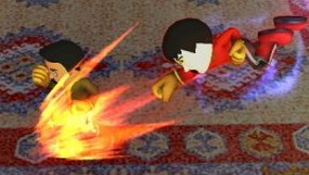 ![]() | Raclée enchaînée Le Mii fonce droit devant lui en portant une attaque. Si elle touche un adversaire, le Mii lui assène une pluie de coup avant de l'envoyer en l'air. |