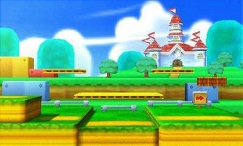 | Le terrain vous amènera à visiter divers décors du jeu Mario 3D Land. Dans un premier temps, l'écran défile vers la gauche, vous amenant à devoir sauter par-dessus de nombreux obstacles. Vous traverserez ensuite un canyon à l'aide de quatre plateformes horizontales. La suite est encore une fois un passage avec un défilement de l'écran. Vous aurez toujours des sauts d'obstacles, mais cette fois-ci, certains sont en rotation et vous feront tomber si vous restez immobile. Le dernier décor est plus aérien et vous ramène petit à petit au point de départ. | |