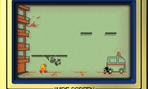| Le terrain changera en prenant l'apparence de divers jeux de la série Game & Watch. Chaque terrain a sa spécificité. Le premier "Fire" prend place devant un immeuble en feu. Des pompiers tendent un trampoline qui vous permet de sauter dessus. Le suivant prend place dans une station service munie de deux plateformes. Les personnes en train de faire le plein peuvent vous blesser. Le suivant est basé sur le jeu "Lion", une énorme cage et deux gardiens apparaissent. Les gardiens vous blessent lourdement lorsqu'ils vous touchent avec leur chaise. Le dernier est basé sur le jeu "Chef". Un cuisinier balancera de la nourriture sur le terrain. Celle-ci vous blesse si elle vous touche. Le cuisinier peut être assommé avec une attaque. | |