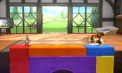 | Le terrain prend place dans un salon du jeu Nintendogs. Les chiens et les chats apparaissant en arrière-plan ne vous causeront aucun souci. De temps à autre, des blocs, des chaussures ou des jouets tomberont sur le terrain, blessant tous ceux sur lesquels ils s'écrasent. | |