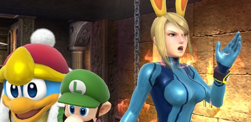 Samus sans armure a été confirmée en tant que personnage jouable pour Super Smash Bros. durant le Smash Bros Direct du 9 Avril 2014.