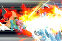 ![]() Smash Final Attaque Triple | Accompagné de la Déflagraton Dracaufeu et du Lance-Soleil de Herbizarre, Carapuce utilise un puissant Hydrocanon sur ses adversaires pour infliger d'énormes dégâts. |