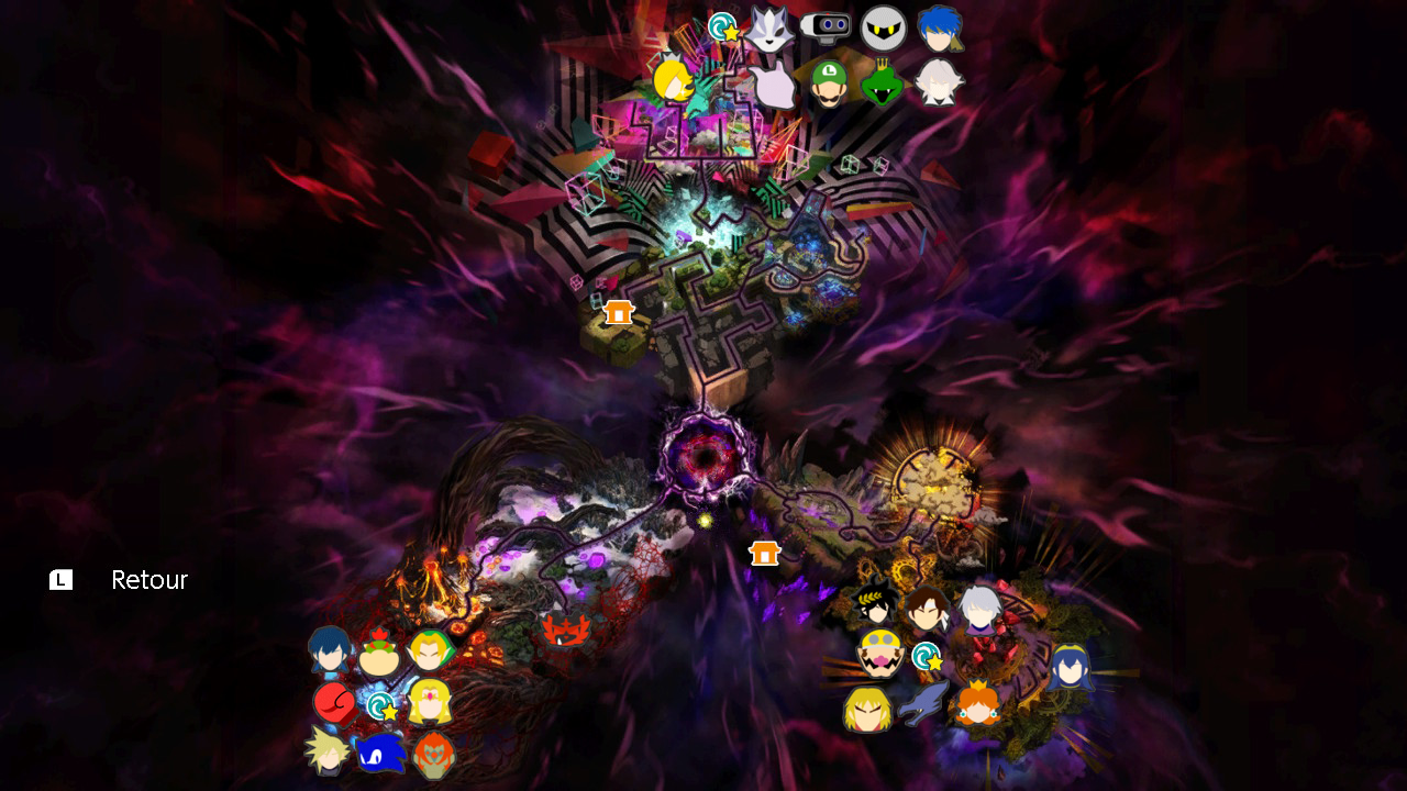 Dans le mode aventure, vous pouvez débloquer tous les personnages avant de combattre le boss final, y compris les Mii (qui seront alors ceux par défaut). Voici leur localisation en image :Contrée de la lumière (42 combattants)