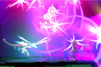![]() Smash Final Frappe Psy | Mewtwo Méga-Évolue en Méga-Mewtwo Y et utilise son attaque signature, Frappe Psy, sur ses adversaires pour infliger des dégâts importants. |