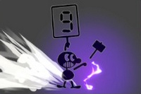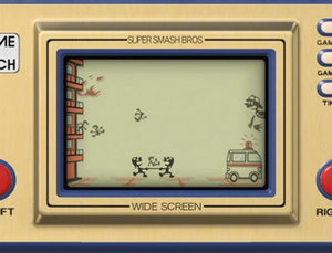 Toutes les attaques spéciales et smash finaux sont basés sur des jeux Game and Watch. En prime, Mr. Game & Watch change de forme pour prendre celle du personnage basé sur lesdites attaques.| Mr. Game & Watch | |||