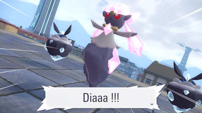 Il veut désormais aller sur les toits. Suivez-le jusqu'à un toit rempli de Méga-Fragments. Deux Strassie apparaissent, suivis peu après par Diancie !