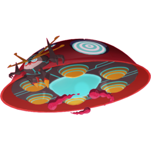 Pose un piège sur le terrain adverse, qui baisse la Vitesse d'un niveau des Pokémon non volant qui entrent sur son terrain. |