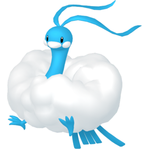 Ses ailes en forme de nuage le dissimulent aux yeux des ennemis. On raconte qu’elles sont devenues blanches après plusieurs générations.
